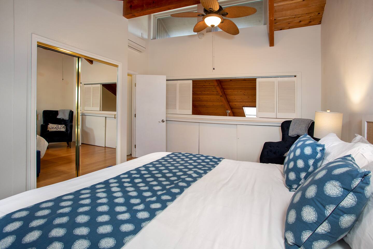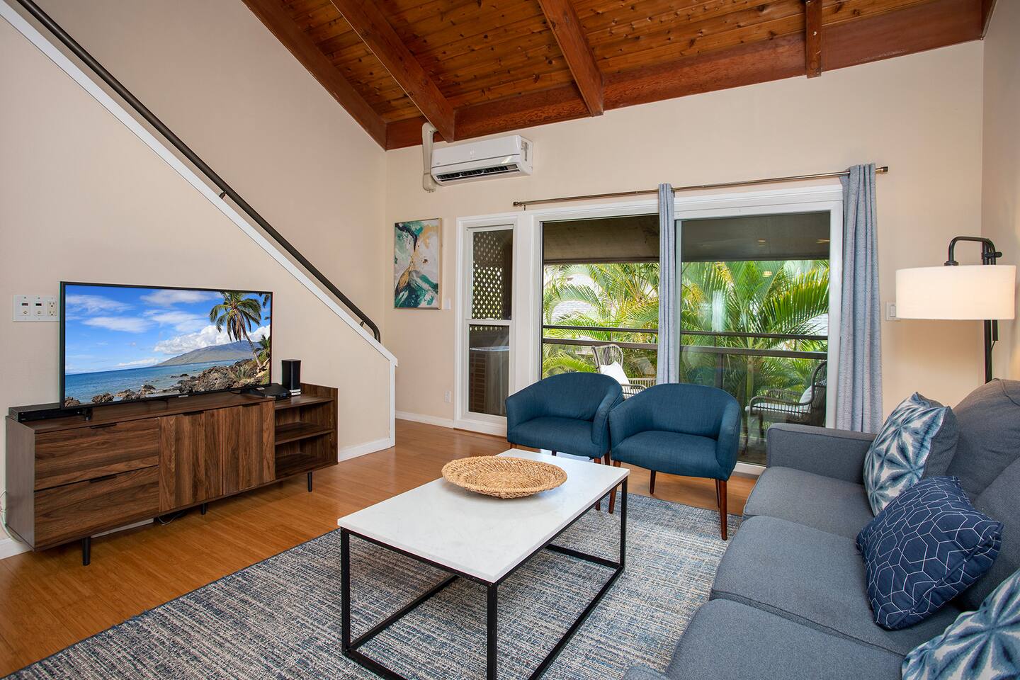 ☆☆ HIGHLIGHTS ☆☆ ✹ Sleeps 6 in a modern loft condo, ideal for families or 2 couples traveling together ✹ 2 comfortable bedrooms w/ smart TVs; 1 king, 1 queen + 1 queen sofabed (living room) ✹ 2 full bathrooms; essential toiletries provided ✹ Full kitchen w/ modern appliances + complimentary coffee ✹ Open living area w/ large flat-screen TV + garden views ✹ Private balcony w/ seating for 2 ✹ High-speed wifi + dedicated workspace ✹ In-unit washer/dryer + starter pack of laundry pods ✹ Dedicated free parking space for 1 vehicle ✹ Shared pool + jacuzzi (open year-round, 9 AM to 6 PM) ✹ BBQ grill + picnic seating ✹ Family-friendly; travel crib, kids’ tableware + toys/books/board games ✹ AC in master bedroom + living room ✹ Complimentary beach gear; towels, chairs, umbrella, boogie boards + more ✹ Serene location; short walk to sandy beaches + short drive to many restaurants/groceries Eager to Read More? Here Are A Few Kind Words From Our Previous Guests: “Melanie’s place was great and we appreciated the quick communication when we were looking for a place on short notice. The upstairs loft made it great to have two separate spaces for me and my friend. We also loved how close it was to so many things. The upstairs work space also came in handy for when I had to get some work done. I would strongly recommend Melanie’s place for your next visit to Maui.” –Naomi “Melanie was a great host. Very helpful and responsive when I had a question. The stay was great and was beautiful. 10/10 !!!” –Ricardo “We had an amazing stay at the condo in Kihei, Maui! The space was clean, comfortable, and well-equipped with everything we needed. The location was perfect, just a short walk to beautiful beaches, great restaurants, and shops. The host was responsive and provided helpful local tips. We highly recommend this condo for a relaxing and enjoyable vacation in Maui!” –Nadia ★★ BEDROOMS ★★ Each bedroom offers a cozy sanctuary after a long day of enjoying the sunshine. Head up to the loft bedroom to stargaze from the comfy king bed – close the shutters for added privacy. There is space for additional guests in the living room, where the sofa opens into a queen-sized bed. ✹ Primary Bedroom: Second floor, king-sized bed, skylight, desk w/ chair, smart TV, AC + privacy shutters ✹ Bedroom 2: First floor, queen-sized bed + smart TV ✹ Living Room: Queen-sized sofa bed w/ memory foam mattress ★★ BATHROOMS ★★ Each bathroom is conveniently located next to a bedroom. Generous countertops mean you can spread out all your favorite cosmetics and toiletries. Choose between a refreshing shower or a soak in the bathtub. The bathrooms are stocked with fresh towels and complimentary toiletries for your convenience. ✹ Bathroom 1: First-floor full bathroom w/ tub/shower combination ✹ Bathroom 2: Second-floor full bath w/ walk-in shower ✔ Essential toiletries provided (including Kirkland shampoo, conditioner + body wash) ✔ Hair dryer ✔ Fresh towels ✔ Laundry room w/ full-size washing machine/dryer + starter pack of detergent ★★ KITCHEN & DINING ★★ Start your days off right with a freshly brewed coffee, savored at the spacious breakfast bar or at the outdoor table on the balcony. Equipped with stainless steel appliances and all the necessary utensils and dishware, cooking delicious meals for the whole group will be a breeze. ✔ Fully stocked kitchen w/ modern appliances (including refrigerator, dishwasher + electric stove) ✔ Complimentary coffee (choice of Keurig or drip coffee) ✔ Basic cookware + dinnerware ✔ Breakfast bar w/ seating for 3 ✔ Cooking essentials (including a spice rack) ★★ LIVING ROOM ★★ The open-concept living room boasts high ceilings and direct access to the kitchen, ensuring everyone feels part of the action. Surf the Roku TV for a binge-worthy show, play a board game with the whole family, or admire the gorgeous tropical landscaping from the balcony. ✔ Flat-screen Roku smart TV ✔ Ample seating; comfy couch (opens to a queen-sized bed) + 2 occasional chairs ✔ Pack ‘n Play ✔ Board games ✔ Easy access to the balcony ★★ OUTDOOR SPACE ★★ The private balcony is the perfect spot to enjoy mesmerizing sunsets while sipping a glass of wine. Take an after-dinner stroll through the lush garden, admiring the plumerias and hibiscus, accompanied by the soothing sound of the fountains. Make the most of the outdoor area by grilling up a feast on the BBQ surrounded by the lush tropical landscape, or chill by the lovely outdoor pool. ✔ Private balcony w/ seating ✔ Community BBQ grill + outdoor dining tables ✔ Shared outdoor pool + jacuzzi (open 9 AM to 6 PM daily) ✔ Beach accessories (including umbrella, towels, chairs, boogie boards, snorkel gear + toys/pool noodles) ★★ ACTIVITIES/ATTRACTIONS ★★ Located right across the street from local beaches, every day can be a beach day during your stay! Stroll over to the sandy beaches lining the Pacific Ocean, or check out plenty of other enjoyable activities, just a short walk or drive away. Here are a few of our favorites: Outdoor & Nature Activities ✔ Kamaole Beach Park II (3.4 miles) ✔ Keawakapu Beach (4.9 miles) ✔ Makena State Park (Big Beach) (10 miles) Adventures & Experiences ✔ Maui Ocean Center Aquarium (6.4 miles) ✔ Ma’alaea Harbor (6.5 miles) ✔ Snorkel at Turtle Town (Maluaka Beach) (9.8 miles) Family & Couple-Friendly Relaxation ✔ Hawaiian Islands Humpback Whale Sanctuary Visitor Center (0.1 miles) ✔ Kihei Regional Park (1.9 miles) ✔ Wailea Golf Club (8.5 miles) Dining and Shopping ✔ Pi’ilani Village Shopping Center (1.4 miles) ✔ Kihei Kalama Village Shops & Restaurants (3 miles) ✔ The Shops at Wailea (6.7 miles) All these activities and more are within your reach when you book with us! ★☆ Reserve Your Dates Now – The Perfect Kihei Getaway Awaits! ☆★