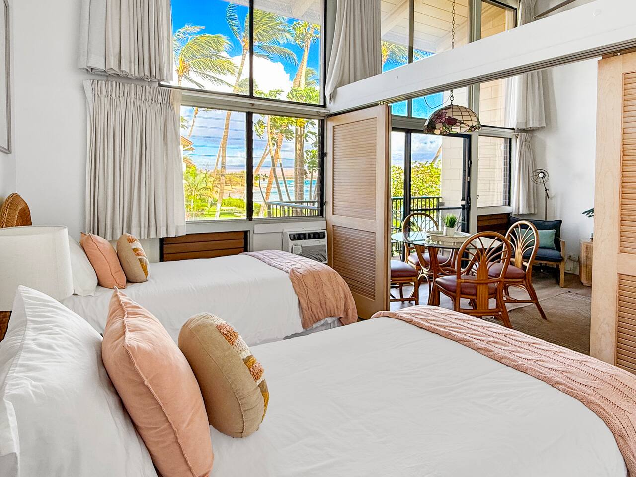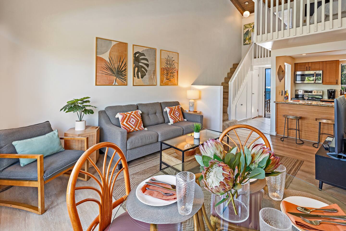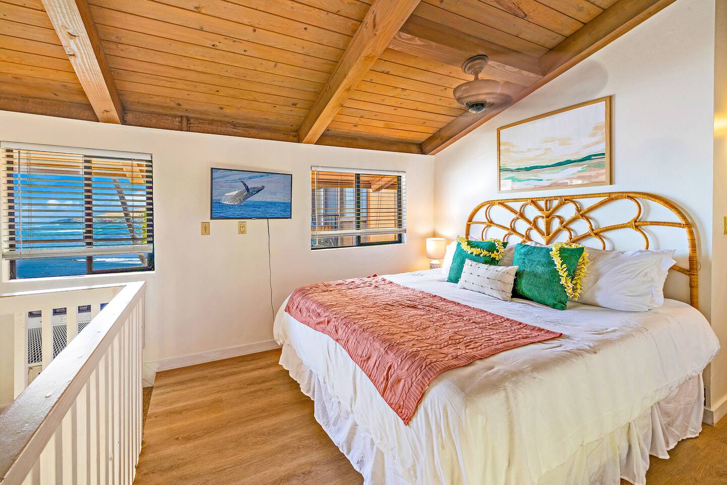 ☆☆ HIGHLIGHTS ☆☆ ✹ Sleeps 6 in a spacious, oceanfront condo accessed via stairs ✹ 2 comfortable bedrooms; 1 king, 2 twins, 1 queen sofa bed ✹ 2 full bathrooms; essential toiletries provided ✹ Full kitchen w/ modern appliances + counter seating ✹ Stylish dining table for 4 w/ ocean views ✹ Open living area w/ large flat-screen TV ✹ High-speed wifi w/ speeds up to 281 Mbps ✹ Air conditioning ✹ Shared outdoor pool + community BBQs ✹ Family-friendly; travel crib, kids’ tableware + board games ✹ Free parking spot ✹ Complimentary use of beach equipment: towels, chairs, umbrella + snorkel gear ✹ On-site coin-operated washer + dryer ✹ Convenient location within the Hono Kai complex, overlooking the Ma’alaea Harbor ✹ Easy access to the beach, restaurants, groceries + many attractions Eager to Read More? Here Are A Few Kind Words From Our Previous Guests: “The beach and beach chairs were nice. We were able to see turtles in the afternoons. The pool was a good option. The beds were comfortable, parking was easy, and AC kept the place cool. Location was just minutes away from shopping, restaurants, and excursions. The property was quiet. We had everything we needed.” –Stacy “Melanie was a wonderful host. We had everything we needed for the week as a family of 4. We cooked and everything was in for kitchen we needed. We used the beach chairs and cooler for lunches. Very private and a nice beach to walk in the morning. Great little pool for the kids. We also did the snorkelling tour at the harbour and walked there, very lovely.” –Brandi “Neil and Melanie are the most amazing hosts! Their Airbnb truly feels like a home in paradise. The house is both spacious and cozy, with every detail thoughtfully designed. The location is perfect—secluded, peaceful, and right on the beach. It made for the best vacation stay I’ve ever had. Mahalo for such a wonderful experience!” –Mochi ★★ BEDROOMS ★★ After a relaxing afternoon on the beach, you can look forward to comfortable beds, cooling AC, and fresh linens. The upstairs loft boasts uninterrupted ocean views right from the bed, a TV, and an ensuite bathroom. Wherever you lay your head for the night (including the living room sofa bed), you’re in for a great night’s sleep. ✹ Primary Bedroom: Top-floor loft w/ king-sized bed, flat-screen TV, ensuite bathroom + spectacular views ✹ Bedroom 2: Main-floor bedroom w/ 2 twin beds, next to the living room (doors for privacy) ✔ Queen size sofa bed (living room) ★★ BATHROOMS ★★ The loft bedroom features a private bathroom with a bathtub, ideal for luxurious soaks after a busy day of exploring nearby attractions. The main bathroom has a large walk-in shower. Both have a calming boho vibe, are pristine, and are stocked with fresh towels and complimentary toiletries for your convenience. ✹ Bathroom 1: Ensuite to primary bedroom w/ a bathtub/shower combo ✹ Bathroom 2: Full bath w/ walk-in shower ✔ Essential toiletries provided (including shampoo, conditioner + body wash) ✔ Hair dryer ✔ Fresh towels ★★ KITCHEN & DINING ★★ Equipped with stainless steel appliances and the essentials you might need (including an Instant Pot), feeding your group will be easy. When you’re ready to dine, gather around the main dining table and soak up the oceanfront views, or pull up a stool to the spacious countertop. Better yet, take your meal out to the balcony and feel the refreshing tradewinds on your face. ✔ Fully stocked kitchen w/ modern appliances (including dishwasher + microwave) ✔ Keurig coffee machine, pour-over coffee maker + complimentary coffee ✔ Basic cookware + dinnerware ✔ Formal dining table w/ seating for 4 ✔ Breakfast bar w/ seating for 3 ✔ Ocean + pool views ★★ LIVING ROOM ★★ Chill out in the bright, open-concept living room. High ceilings and floor-to-ceiling windows flood the interior with natural light for a relaxing atmosphere. Put your feet up and watch TV, play a board game, or plan the next day’s activities for your perfect Maui getaway. ✔ Flat-screen smart TV ✔ Plush couch (opens to a sofa bed) ✔ High ceilings + elegant decor ✔ Direct access to private balcony ✔ Pack ‘n Play ✔ Board games ✔ Stunning views of the beach ★★ OUTDOOR SPACE ★★ Wake up to a breathtaking sunrise from your private balcony. Listen to the soothing sounds of the Pacific Ocean and watch green sea turtles bobbing up for air or rolling in the surf as you sip a beverage. In the winter months, you may be lucky enough to spot a breaching whale or two. When you need a break from the sandy shores, take a dip in the shared pool or fire up one of the BBQs for a delicious grilled meal. ✔ Balcony w/ outdoor dining + seating, overlooking Ma’alaea Bay ✔ Community swimming pool ✔ Shared charcoal BBQ grills ✔ Beachside sun loungers ✔ Complimentary beach gear provided (including towels, chairs, umbrellas, and snorkelling equipment) ★★ ACTIVITIES/ATTRACTIONS ★★ You’re spoiled for choice of exciting excursions and cultural experiences when you stay at this stunning condo. Check out a small sample of the popular activities available to you: Outdoor & Nature Activities ✔ Haycraft Park (0.1 miles) ✔ Ma’alaea Beach (4 miles) ✔ Sugar Beach (5.1 miles) Adventure & Experiences ✔ Maui Ocean Center Aquarium (0.6 miles) ✔ Ma’alaea Harbor (0.7 miles) ✔ Flyin’ Hawaiian Zipline (4.6 miles) Family & Couple-Friendly Relaxation ✔ Wailuku Town (7.1 miles) ✔ Maui Arts & Cultural Center (8 miles) ✔ Maui Nui Botanical Gardens (8.3 miles) Dining & Shopping ✔ Ma’alaea Harbor Shops & Restaurants (0.7 miles) ✔ Farmers Market Maui (Kahului) (5.5 miles) ✔ Pi’ilani Village Shopping Center (8 miles) All these activities and more are within your reach when you book with us! ★☆ Reserve Your Dates Now – The Perfect Wailuku Getaway Awaits! ☆★